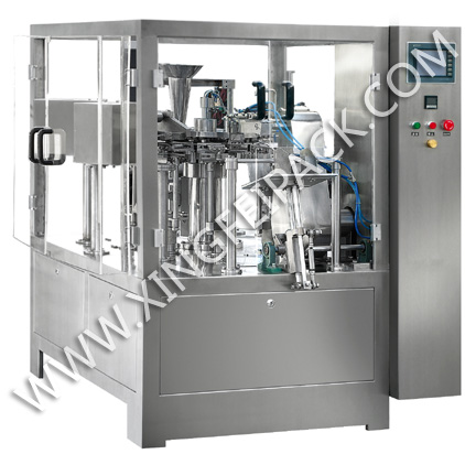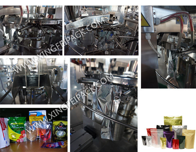 本機(jī)適用于平面袋,自立袋,拉鏈袋等各種形狀的熱封的復(fù)合袋, 與各種計(jì)量機(jī)配套,可進(jìn)行顆粒,粉劑,液體等物料的包裝。