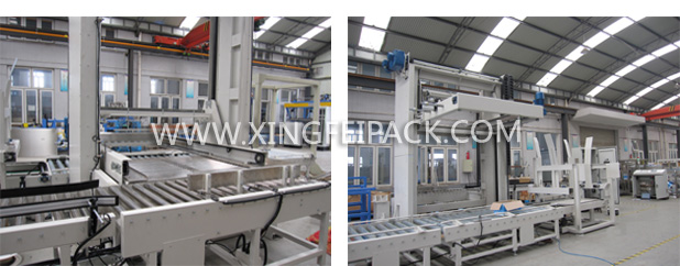 采用觸摸屏操作,PLC控制,可對(duì)紙箱的排列方式,堆垛層數(shù)、托盤供應(yīng)及輸出設(shè)定。