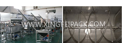 螺帶混合機對于粘性或凝聚性的粉粒體的混合有良好的效果,如奶粉,豆粉雞精,淀粉等??梢耘c我公司上料機等配套實現(xiàn)整條包裝線配套使用。除電機、軸承外其余為不銹鋼制成。